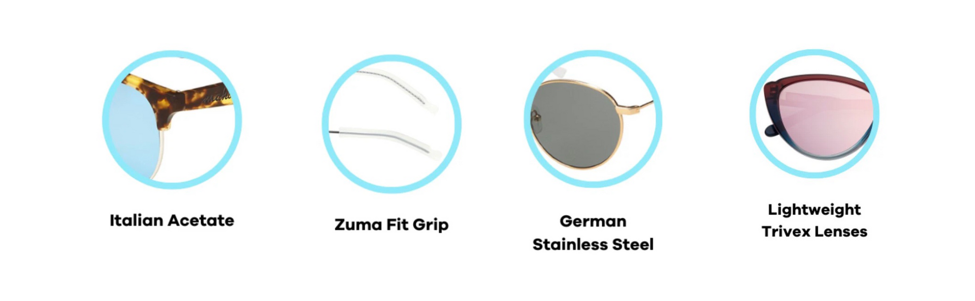 Handcrafted, Italian quality. Made from 100% sustainably sourced and biodegradable Mazzuchelli acetate that won’t fade, crack or peel overtime. Stainless steel Italian barrel hinges keep everything intact, no matter the wear and tear.
