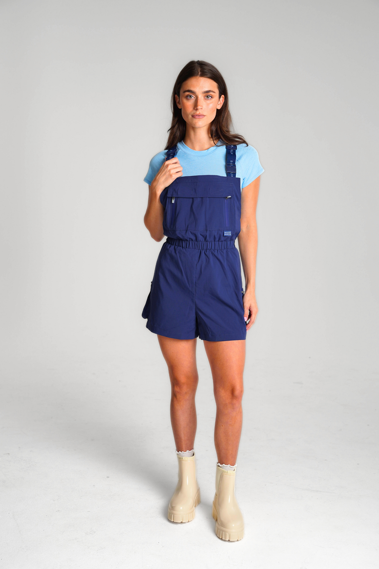 Fit: Relaxed romper silhouette with a cinched waist for shape